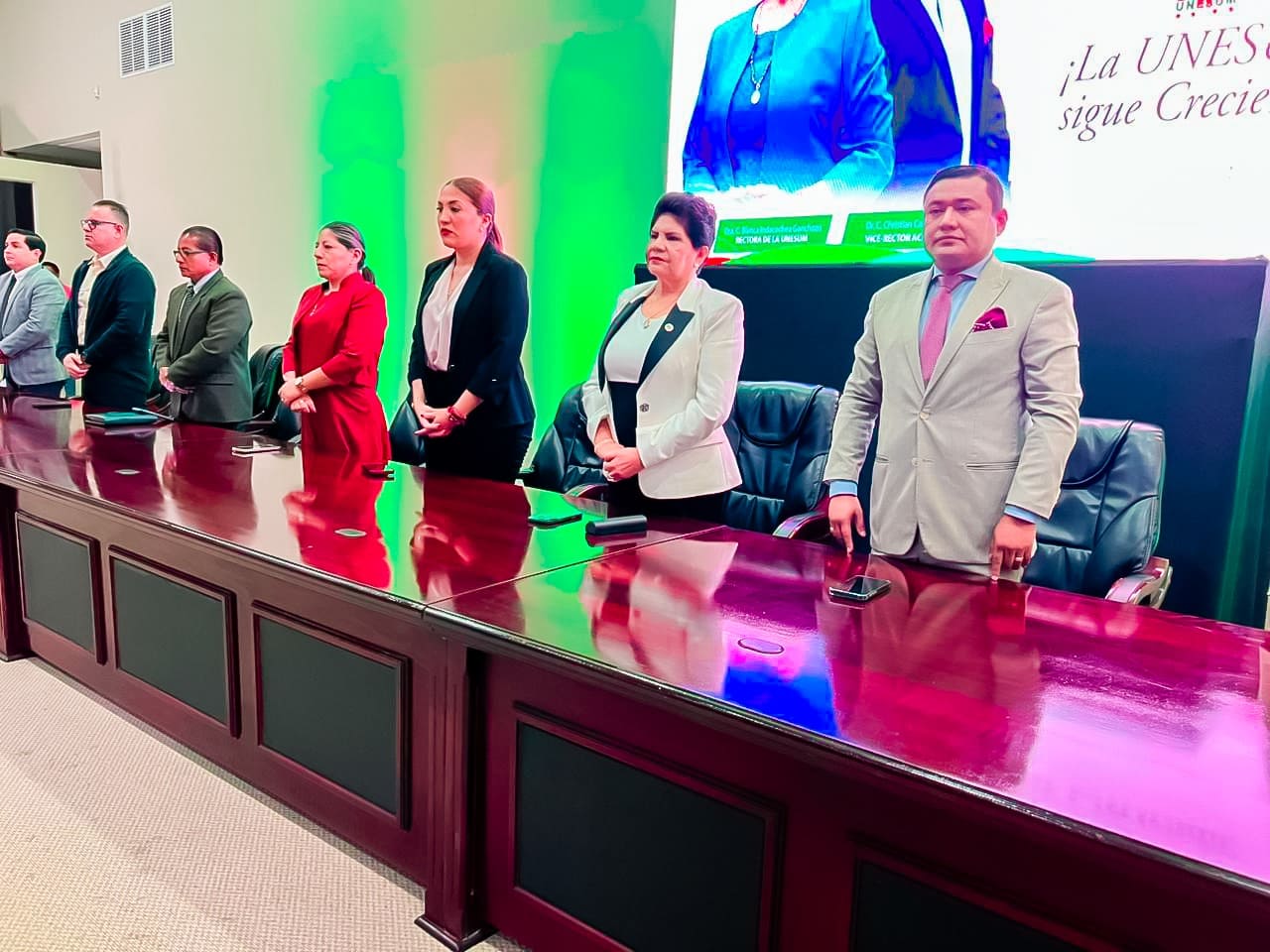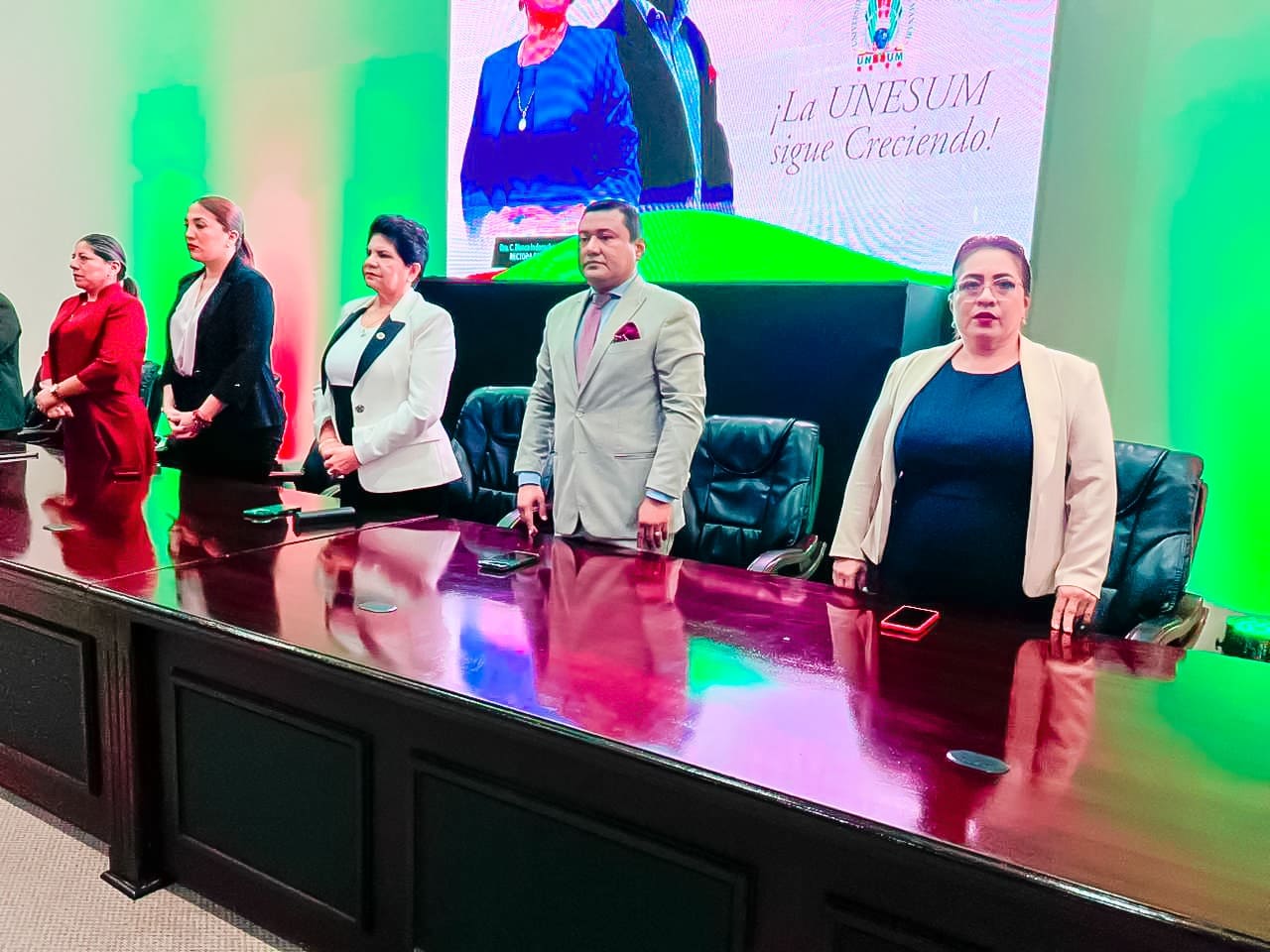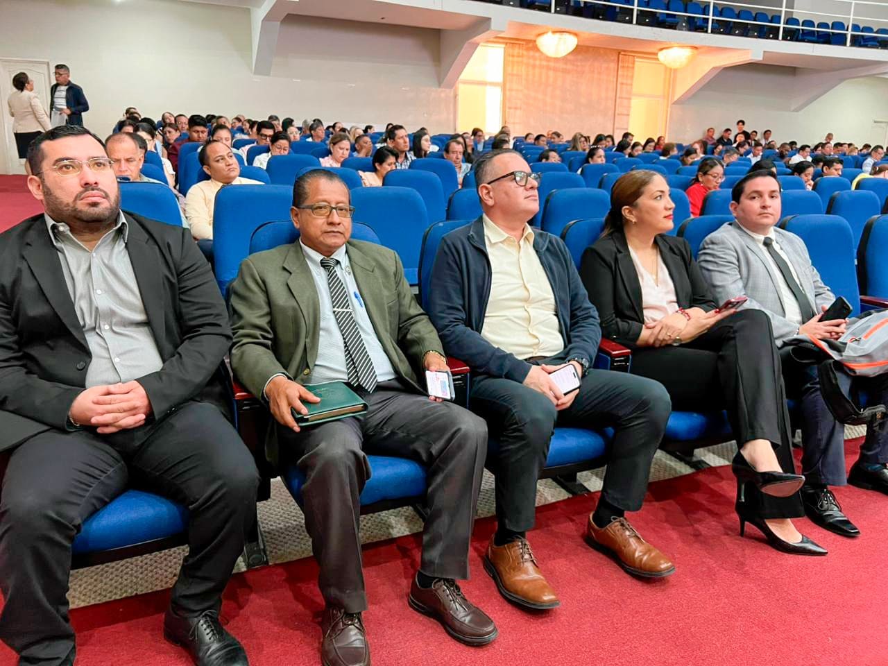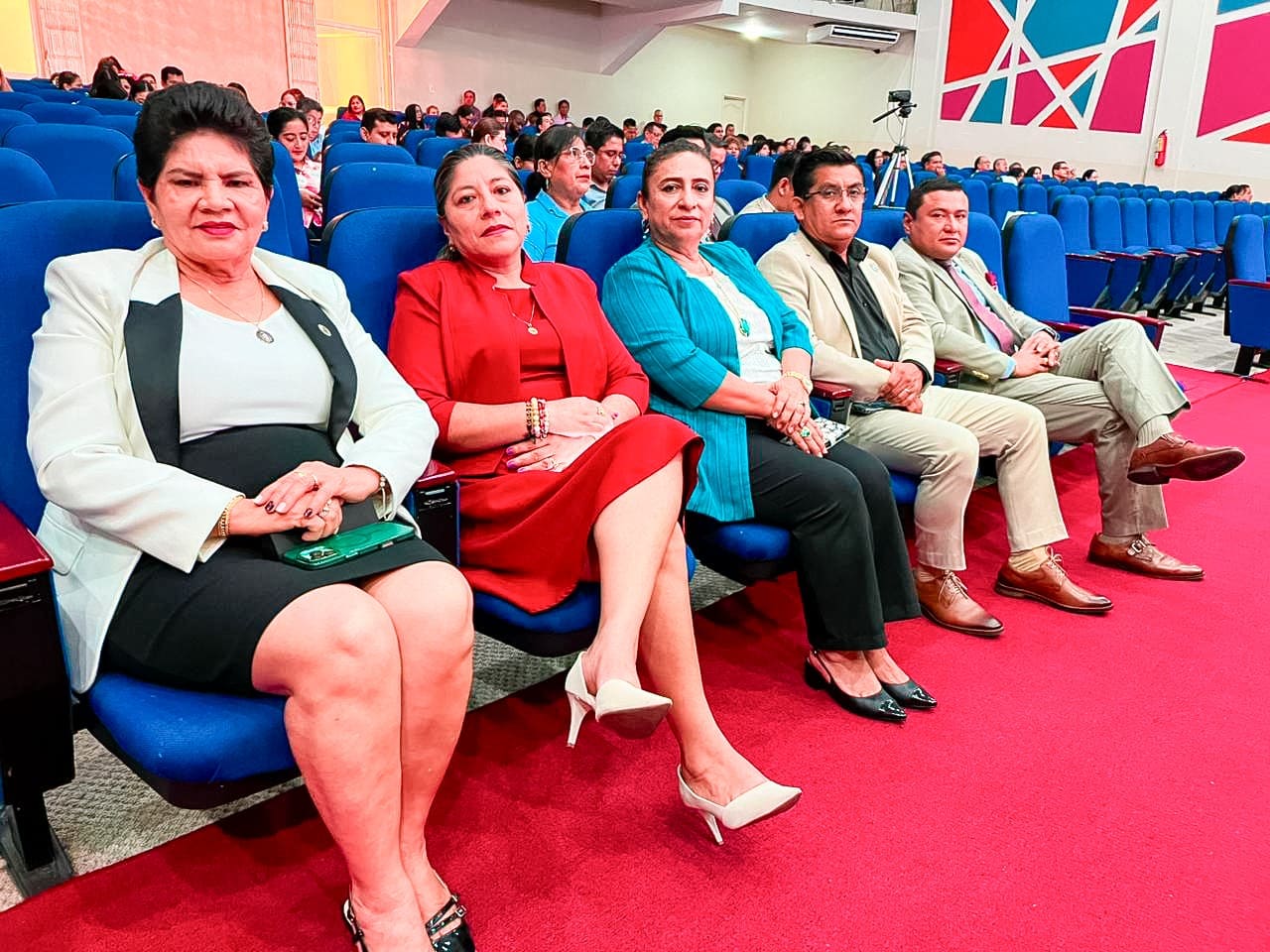 El evento, desarrollado en el Auditorio del Edificio Central de la UNESUM, contó con la presencia de la Dra. Blanca Indacochea Ganchozo, rectora de la UNESUM; el Dr. Christian Cañarte Vélez, vicerrector académico; y el Dr. Leopoldo Venegas Loor, director del Instituto de Posgrado, junto a decanos y directivos de las diferentes facultades.
