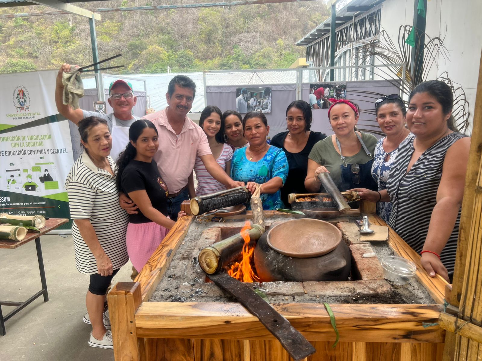 El Área de Capacitación y Desarrollo Local de la UNESUM San Vicente, junto con FOCAZNOM  impartió un taller práctico a emprendedores gastronómicos  del Cantón San Vicente sobre  la cocina tradicional y ancestral manabita con el objetivo de brindar a los participantes una visión general sobre el origen, evolución y características de la gastronomía tradicional de la Provincia de Manabí, destacando su valor cultural y patrimonial, revisando su historia y raíces de la gastronomía manabita, ingredientes emblemáticos de Manabí, técnicas y herramientas tradicionales y la cocina como patrimonio cultural inmaterial, mientras se prepararon en horno de leña y ollas de barro , productos manabitas con varias técnicas de cocción ancestral.