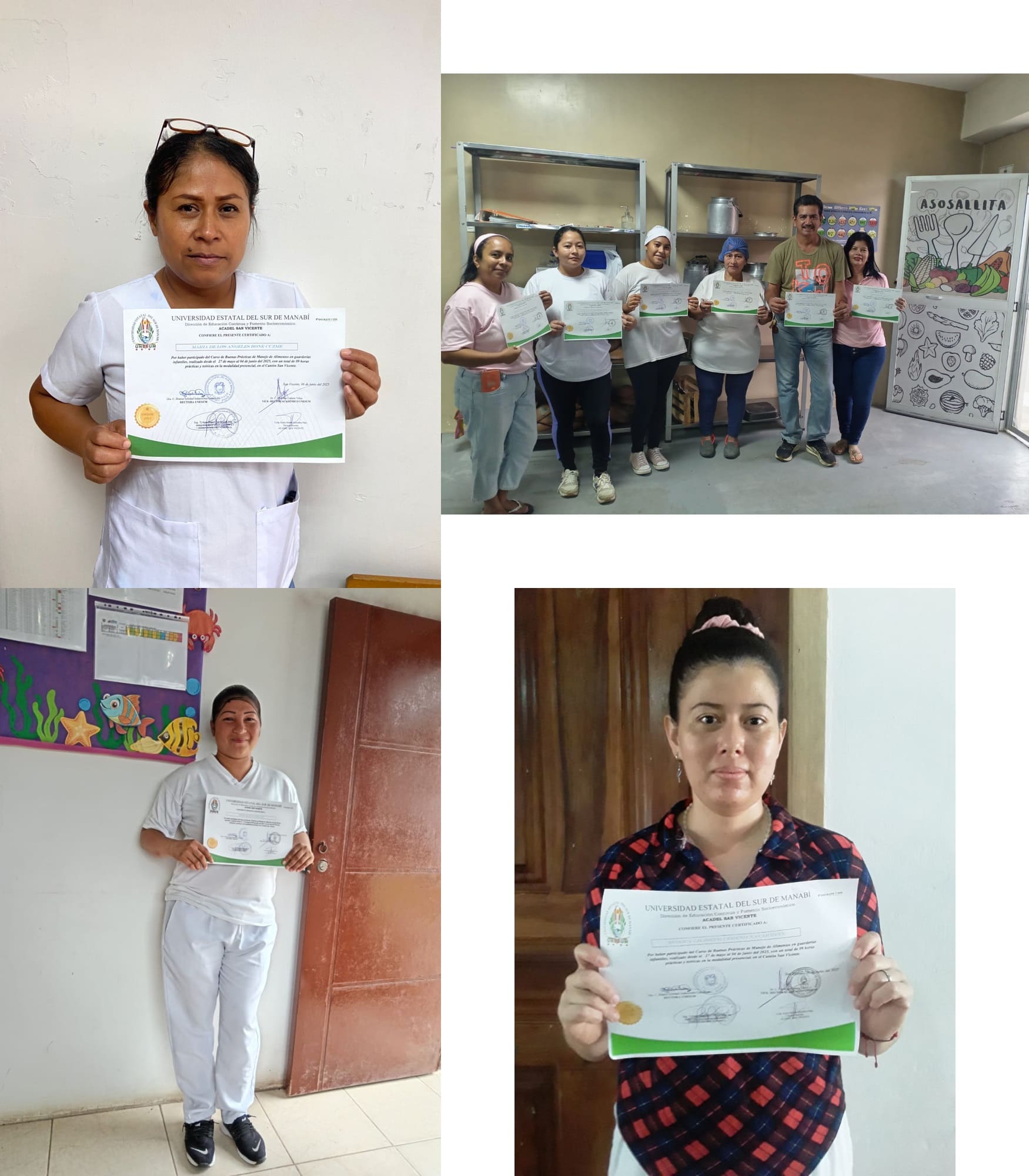 El Área de Capacitación y Desarrollo Local de la UNESUM San Vicente, capacitó a socios y socias de la  ASOSALLITA , asociación perteneciente a la FOCAZNOM, en “Buenas Prácticas de Manejo de Alimentos” y que está dando los servicios de alimentación en los Centros de Desarrollo Infantil  que son administrados por el MIES y el Gad Municipal del Cantón San Vicente, con el objetivo de garantizar que todas las personas involucradas en la manipulación de alimentos apliquen procedimientos higiénicos y seguros durante la recepción, almacenamiento, preparación y servicio de alimentos, para prevenir enfermedades transmitidas por alimentos (ETA) y asegurar productos inocuos para el consumidor.