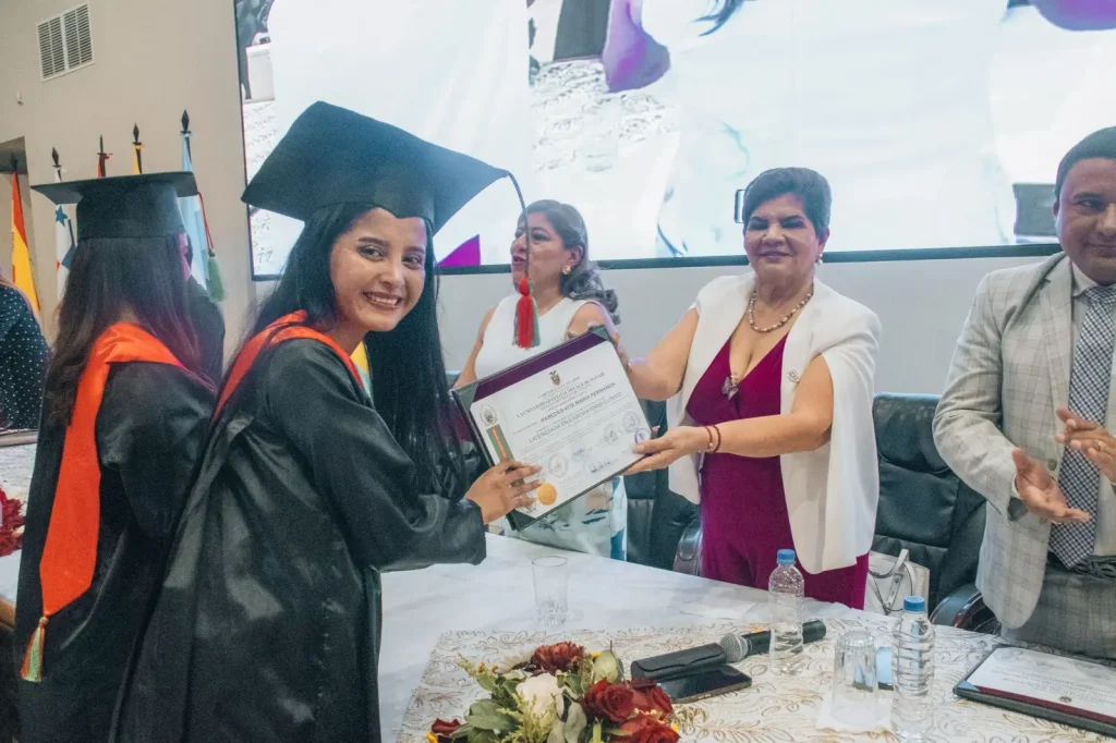 agradecimiento, motivando a los nuevos graduados a continuar su formación y