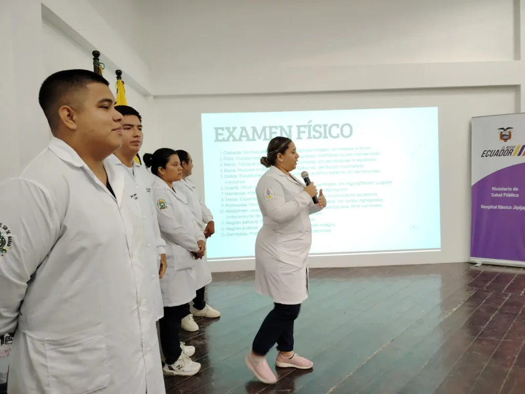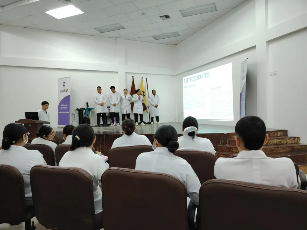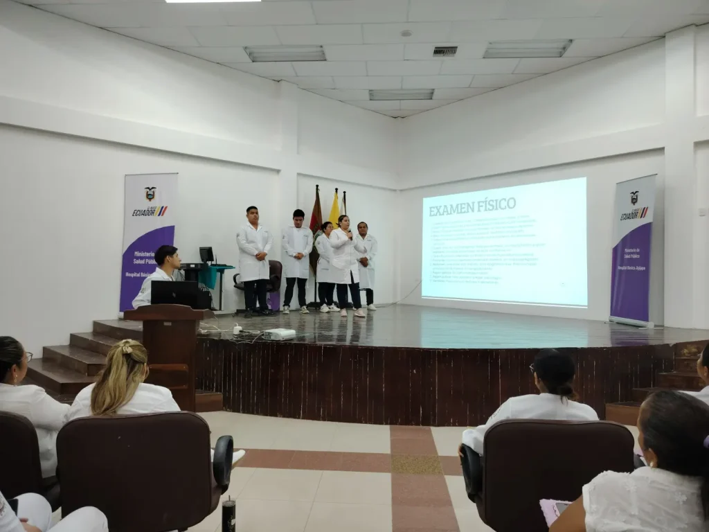 El evento se desarrolló en el Auditorio del Hospital Básico de Jipijapa, donde 33 estudiantes de segundo nivel paralelo B, en la asignatura Enfermería Básica II, expusieron los casos clínicos trabajados durante su proceso de formación práctica